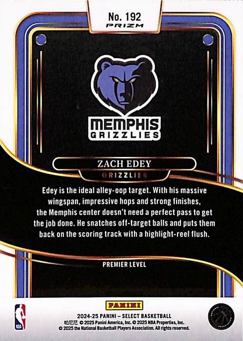 2024-25 Panini Select - Premier Level Zach Edey #192 Blue (RC)
