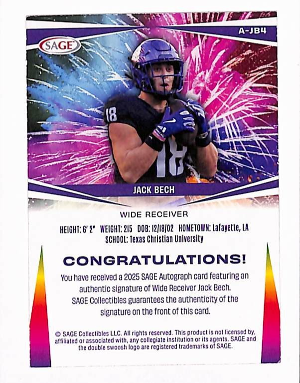 2025 Sage Jack Bech AUTO/ RED FOIL SSP Rookie Card No. A-JB4