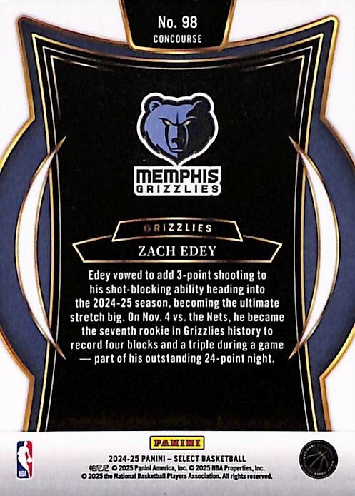 2024-25 Panini Select - Concourse Zach Edey #98 Blue (RC)