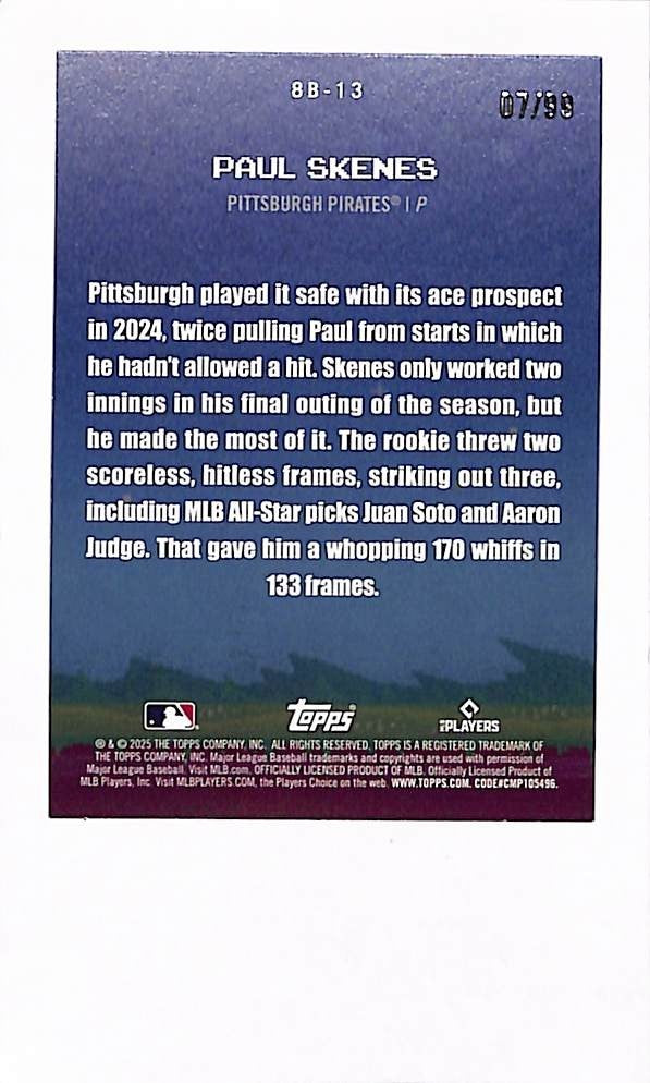2025 Topps Series 1 Paul Skenes 8-Bit Ballers /99 8B-13