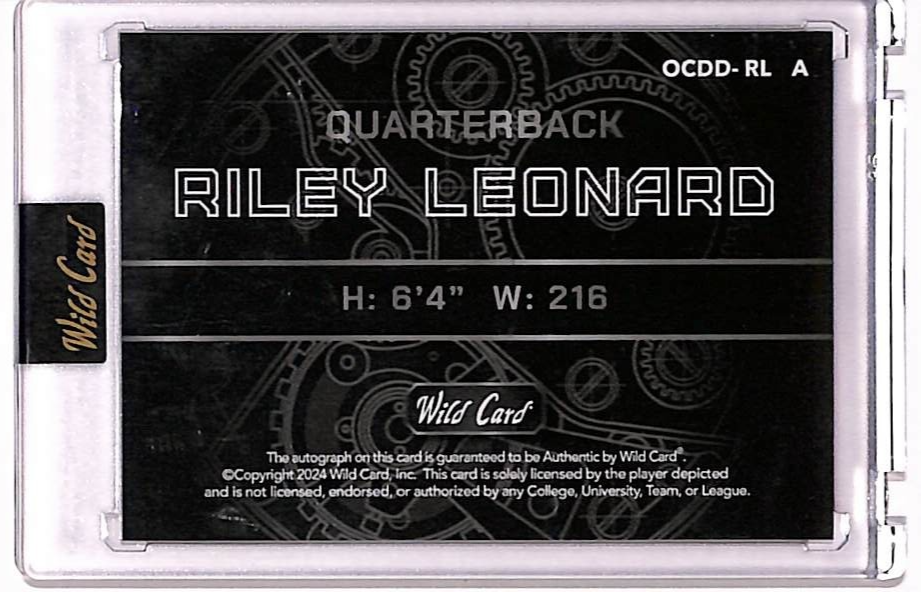 2024 Wild Card On The Clock Riley Leonard True 1/1 Auto Autograph #OCDD-RL RC