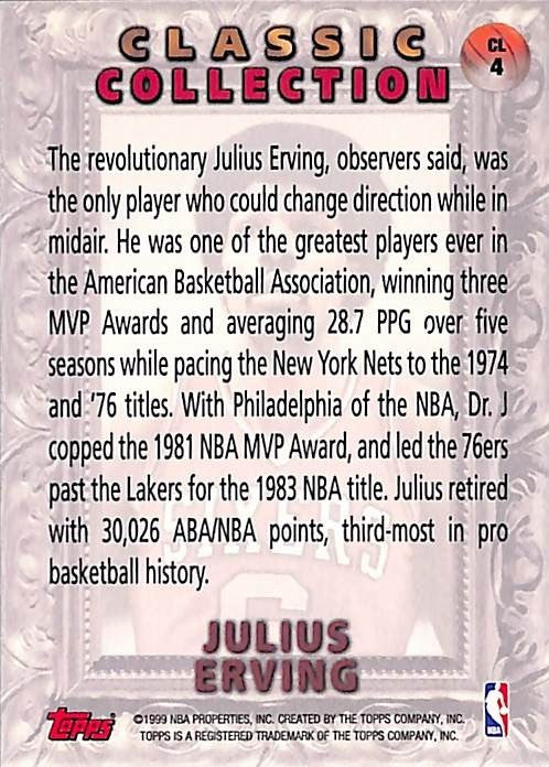 1998-99 Topps - Classic Collection Julius Erving #CL4
