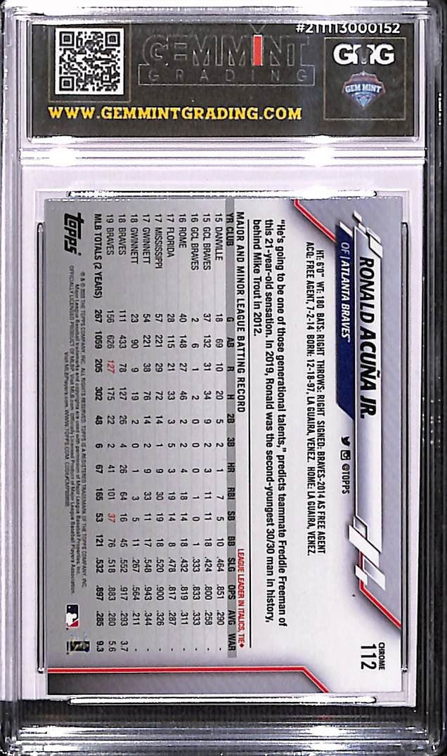 2020 TOPPS CHROME RONALD ACUNA JR. REFRACTOR #112 GEM MINT 10