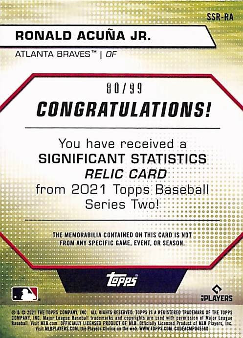 2021 Topps - Significant Statistics Ronald Acuña Jr. #SSR-RA /99