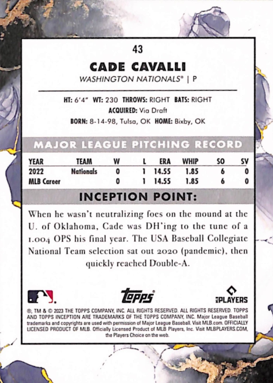 2023 Topps Inception - Cade Cavalli #43 Inception /99 (RC)