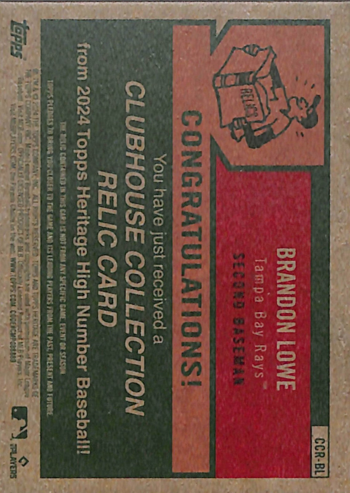 2024 Topps Clubhouse Collection Relics Brandon Lowe #CCR-BL (MEM)