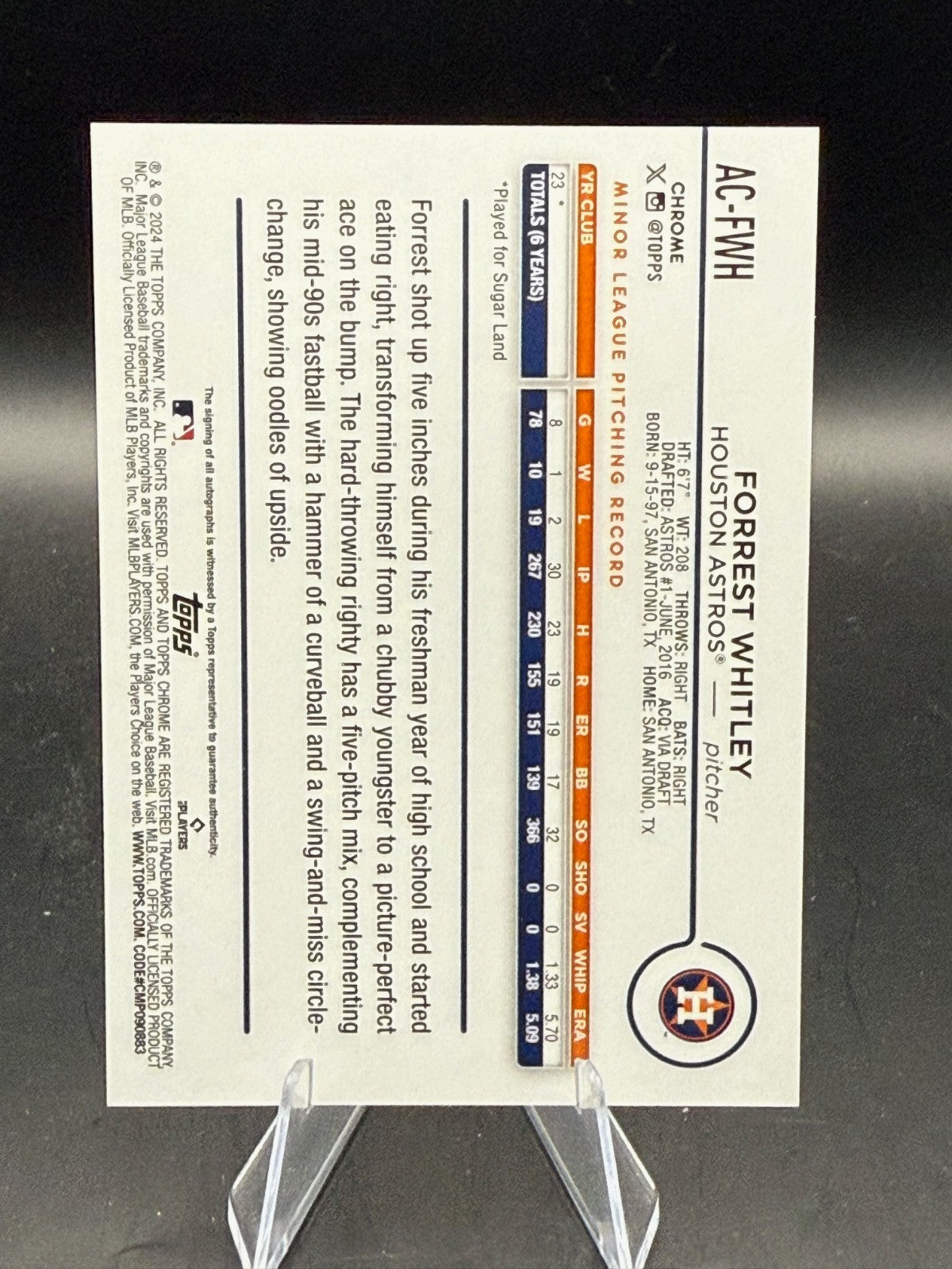 2024 topps chrome Update Forrest Whitley Auto B&W mini diamond AC-FWH